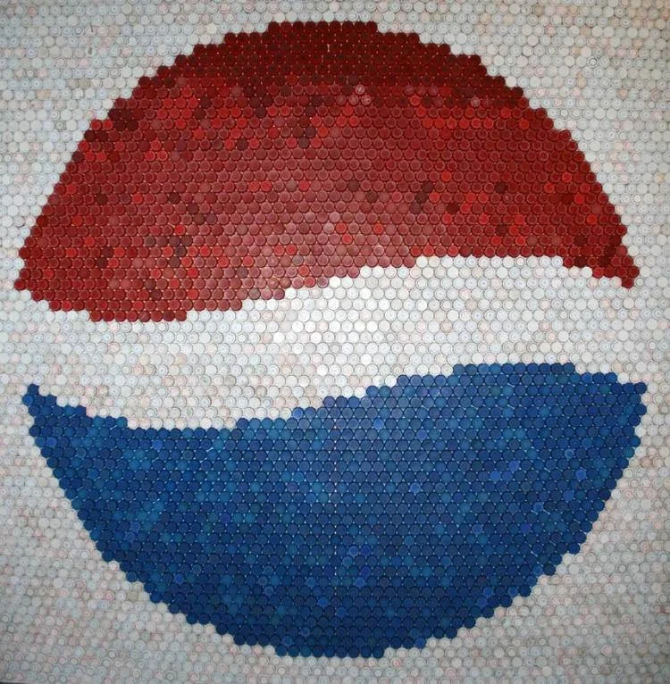A 6x6ft Pepsi logo, made from recycled bottle caps as a promotional piece when Pepsi sponsored Terracycle.